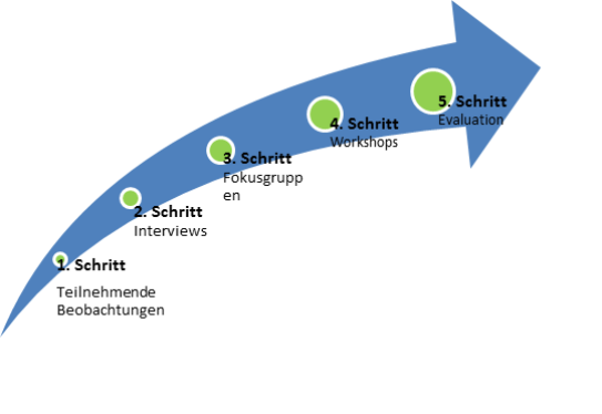 Die Identifikation von Bedürfnissen und Bedarfen im Rahmen einer transkulturellen Willkommens- und Organisationskultur sowie die Entwicklung des Qualifizierungskonzeptes vollzog sich in folgenden Schritten: